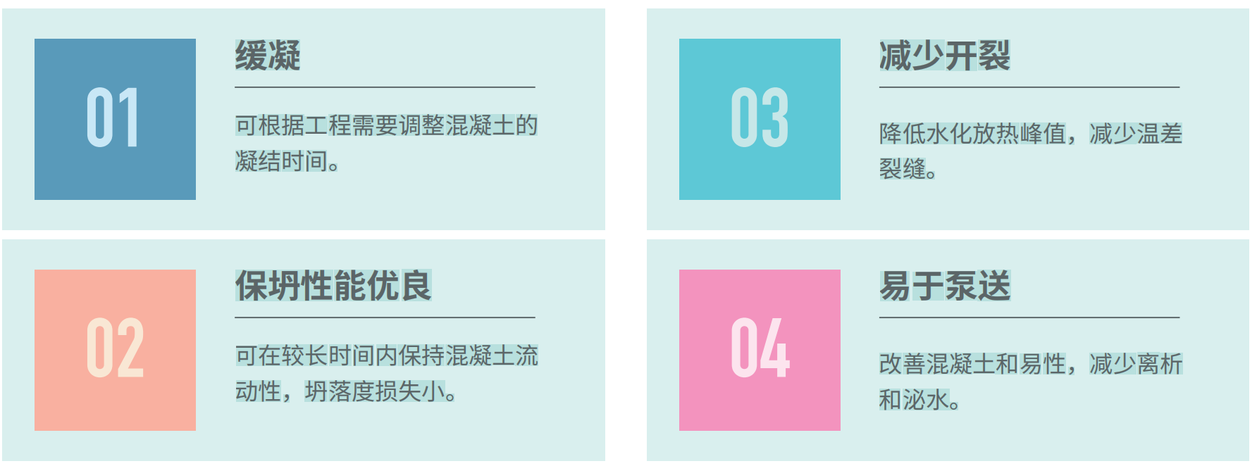 基礎(chǔ)混凝土,高溫環(huán)境施工、長距離運輸和泵送施工的混凝土,其他需要延緩凝結(jié)時間的混凝土。不宜用于有早強要求的混凝土及蒸養(yǎng)混凝土。