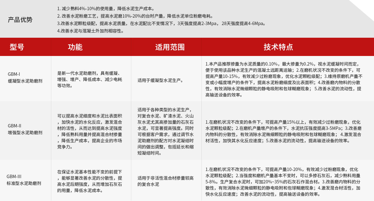 水泥助磨劑是一種改善水泥粉磨效果和性能的化學(xué)添加劑,可以顯著提高水泥磨機(jī)臺(tái)時(shí)產(chǎn)量、各齡期水泥強(qiáng)度、改善水泥的流動(dòng)性。